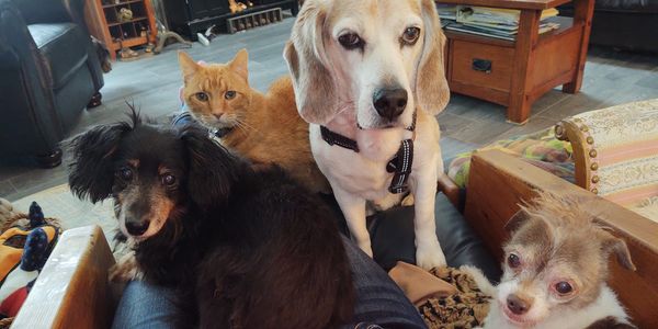 Lila, Bentley, Cooper and Lady our four fur children who through the Pet Effect help us to have "pawsitive" mental health as a couple!